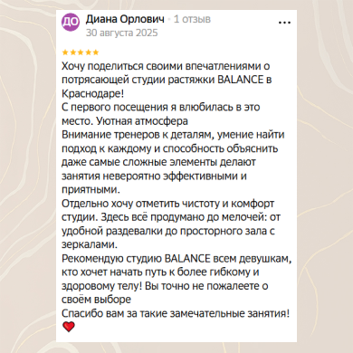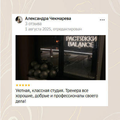 Добро пожаловать в студию растяжки BALANCE — место, где гармония и уют сочетаются с профессионализмом и заботой. Атмосфера нежных пастельных оттенков поможет Вам чувствовать себя комфортно и расслабленно.